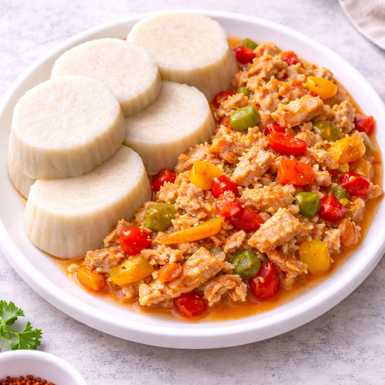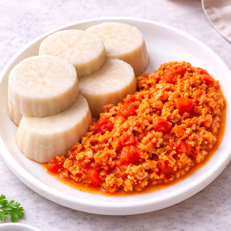 A classic and comforting favourite — soft, perfectly cooked Fro’yams served with a rich, savoury egg sauce. Simple, satisfying, and full of flavour.